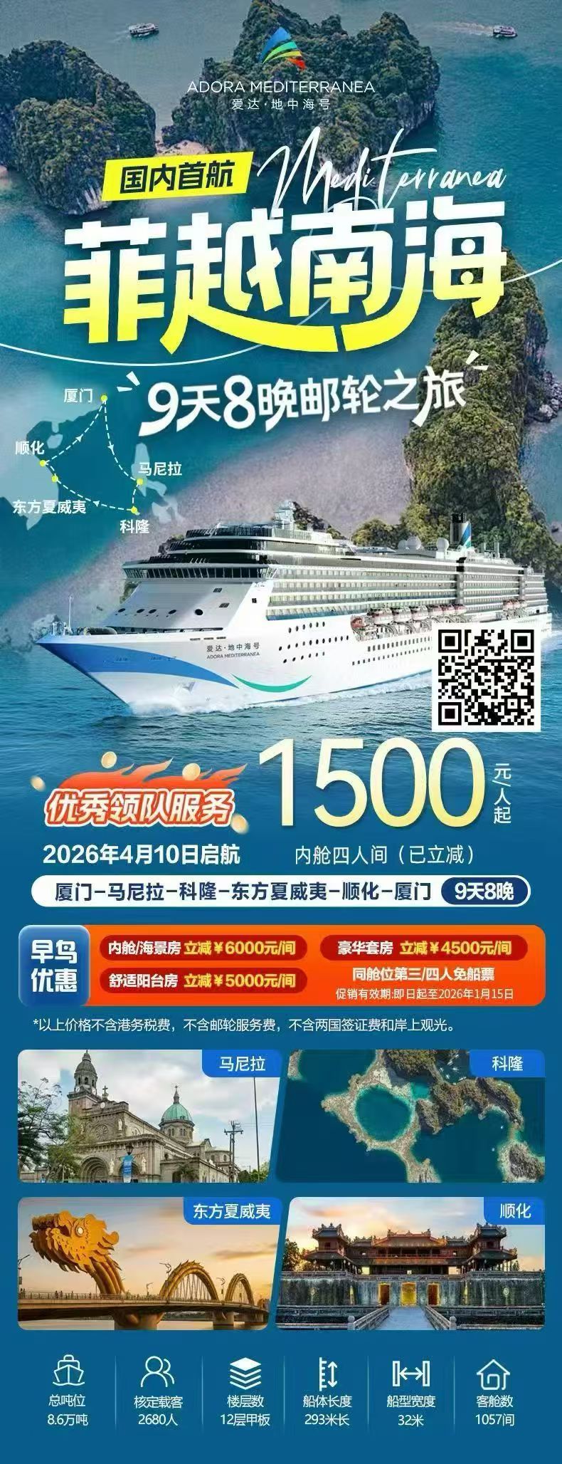 ⚓️到访港口: 菲律宾库里马奥、菲律宾马尼拉、越南东方夏威夷、越南顺化