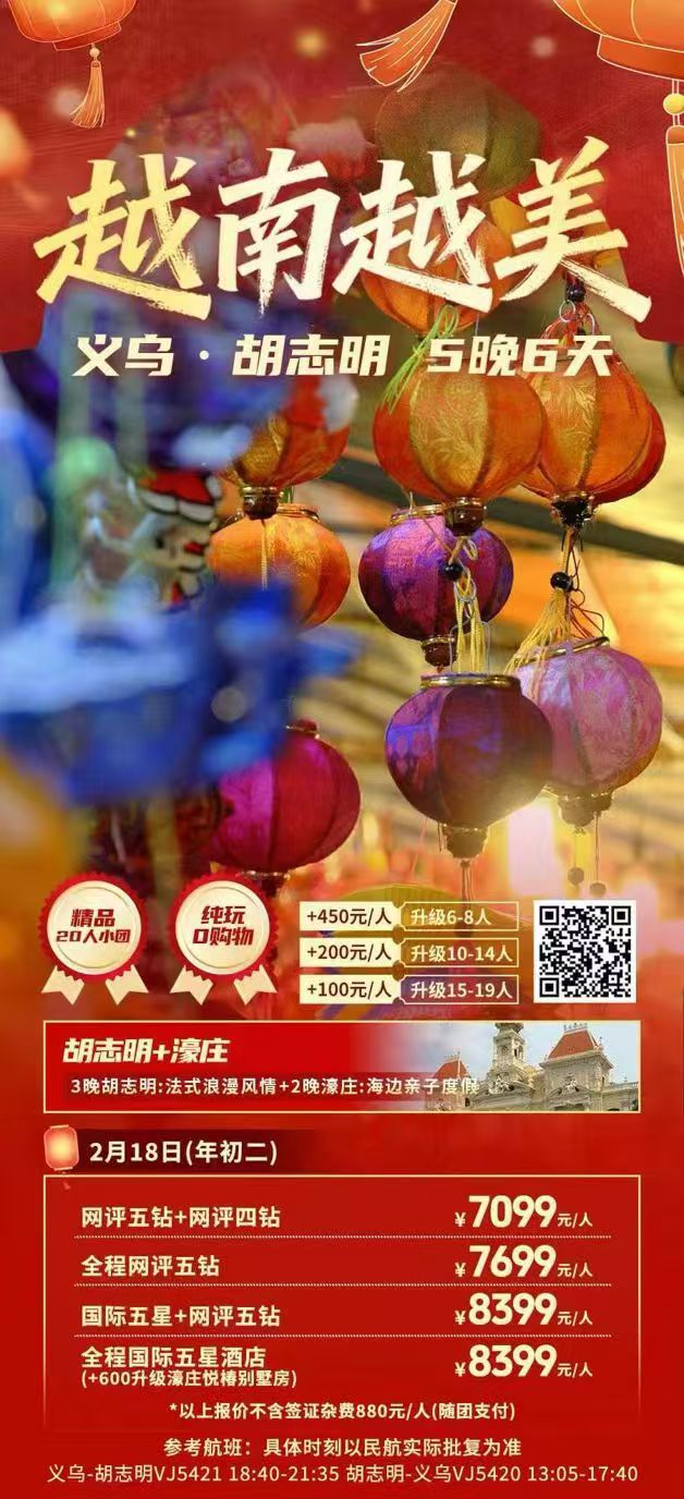 纯玩越南胡志明5晚6天(义务/杭州出港,春节)
