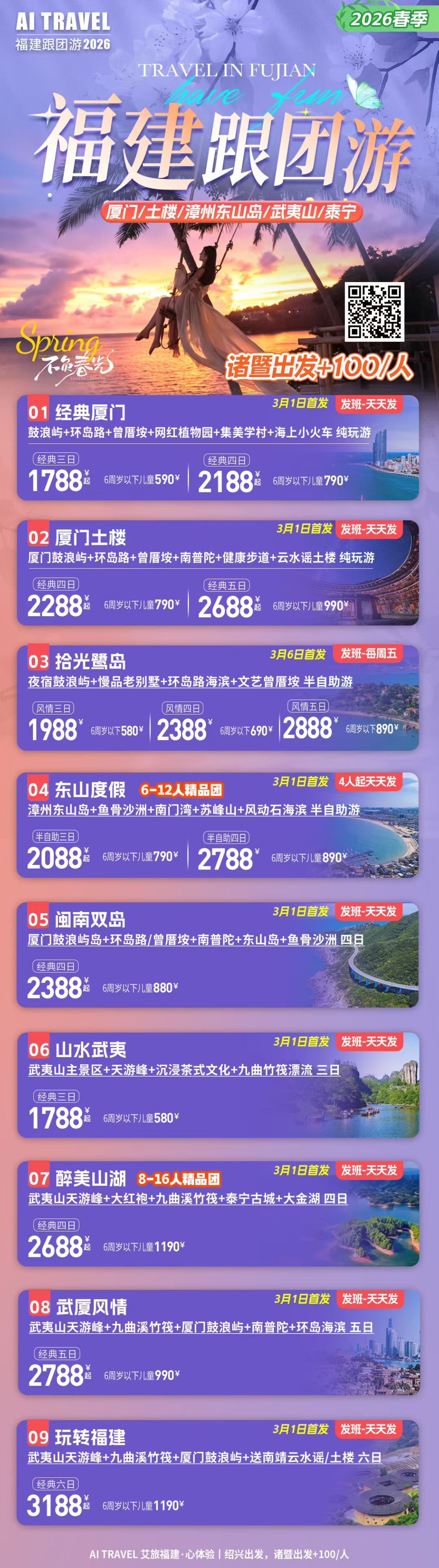 福建(厦门/漳州/泉州/福州/平潭)跟团游3日/4日/5日计划
